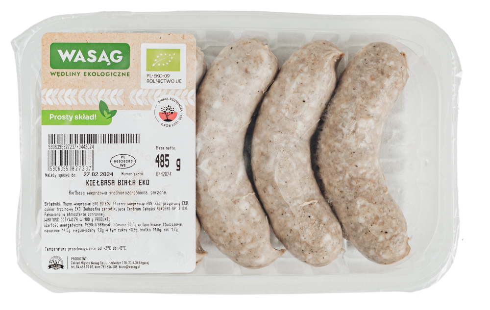 KIEŁBASA BIAŁA BIO (6 szt.) 485 g - WASĄG (NA ZAMÓWIENIE)